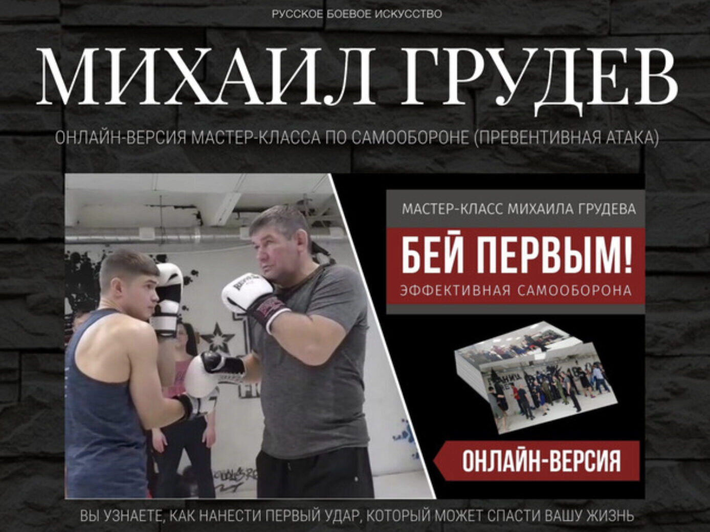 Видео-курс Михаила Грудева Самые эффективные техники нанесения основных ударов, применяемые в уличном конфликте; Работа с внутренними закрепощениями (снятие физических и эмоциональных зажимов); Приемы практической самообороны, многократно проверенные на личном опыте. ЧТО ВКЛЮЧАЕТ В СЕБЯ ВИДЕО-КУРС
