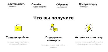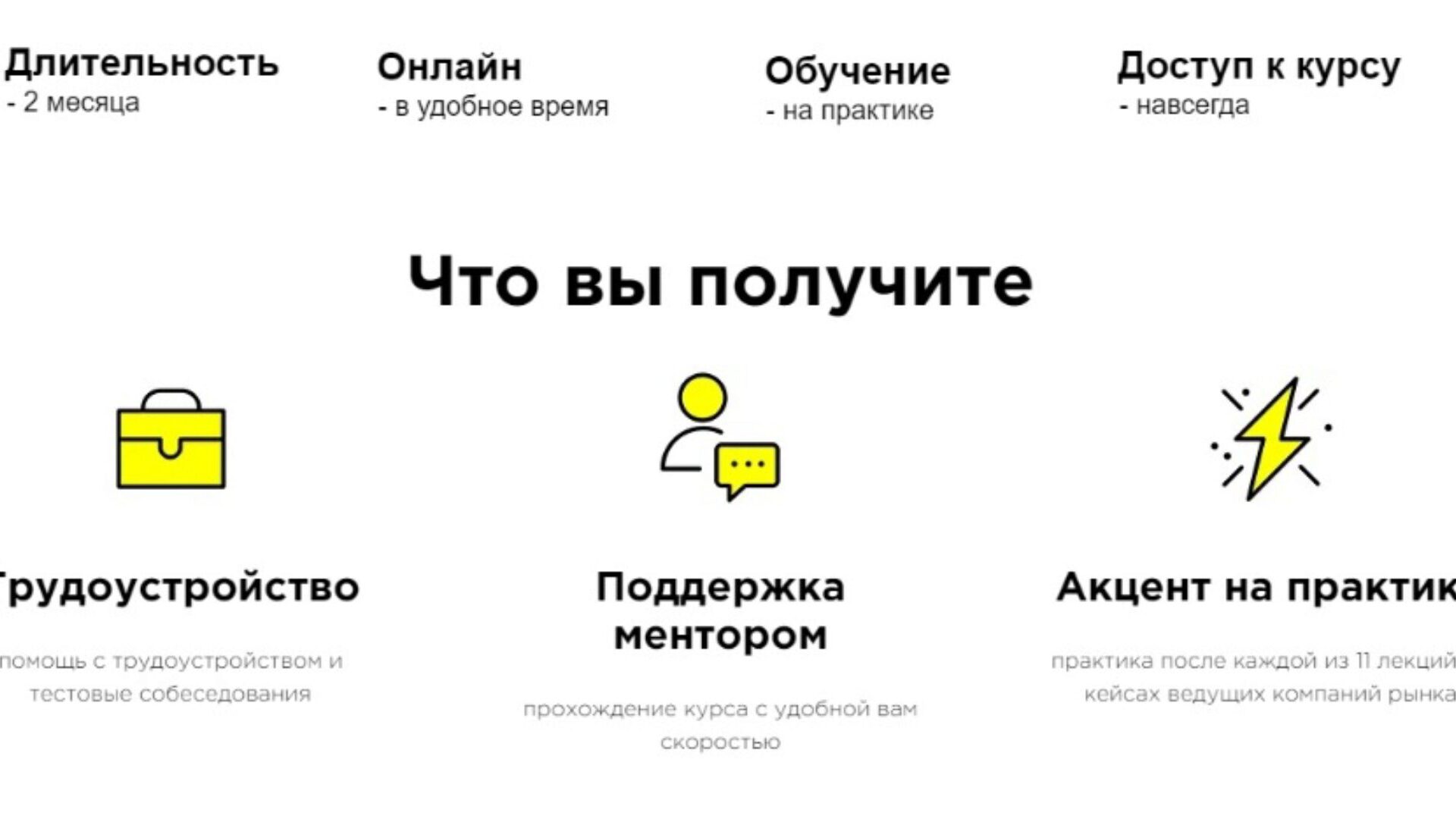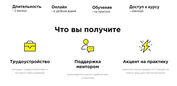 Ведущие компании всегда будут рады нанять такого профессионала, а мы — готовы помочь им в этом. На мини-курсе вы сможете получить необходимые навыки, собрать проекты для вашего резюме и стать именно таким специалистом. Яндекс, Skyeng, Nimax, Сбербанк, Selectel, Avito — одни из немногих компаний, с которыми мы сотрудничаем, и знания, полученные на нашем мини-курсе, помогут вам попасть в команду мечты.