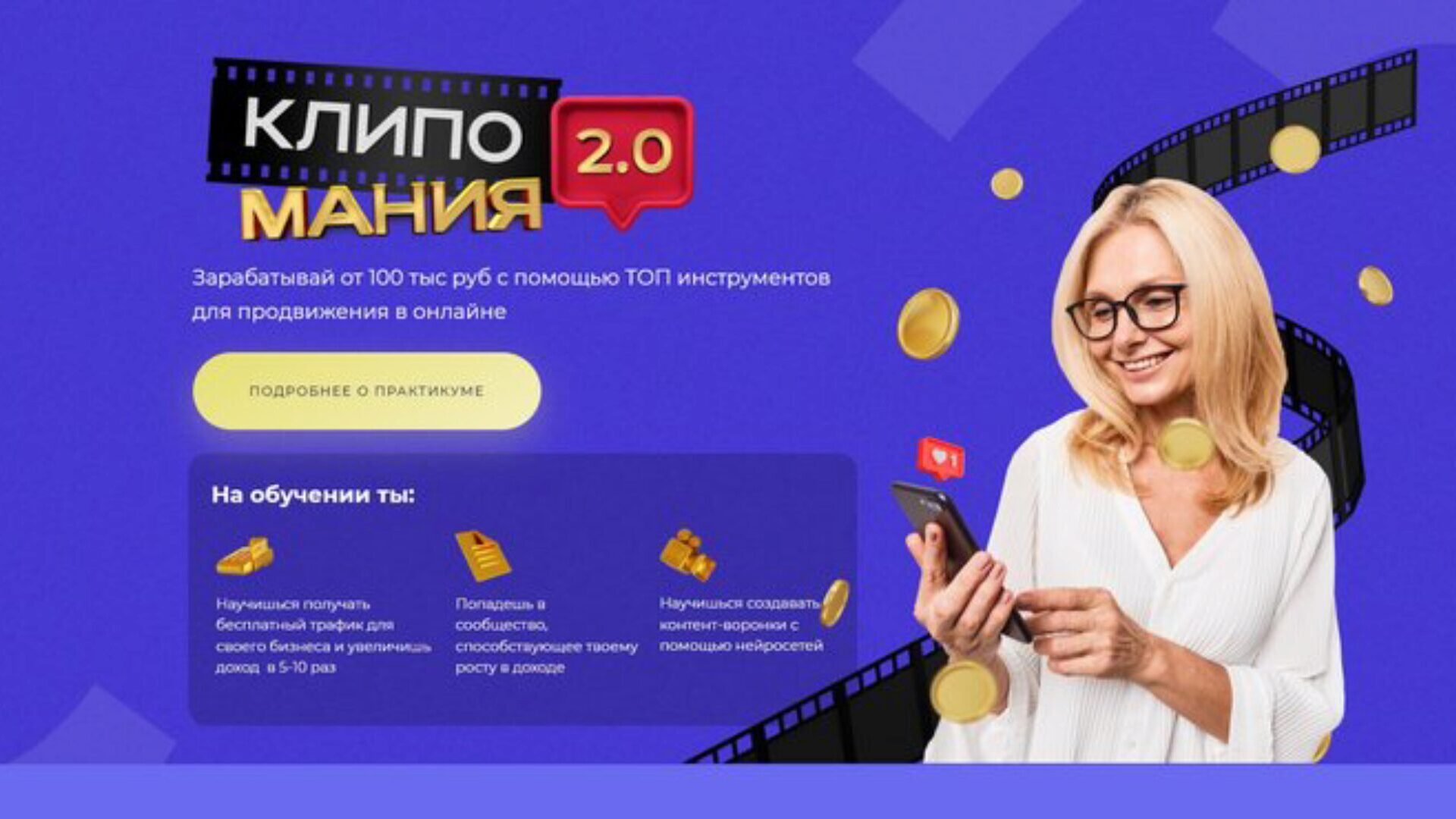 Научим снимать ролики, благодаря которым, вы начнете зарабатывать деньги Даже если у вас: Мало опыта в продвижении в соцсетях; Плохая камера на телефоне; Нет навыков монтажа; Не раскрученный аккаунт… Вы начнете зарабатывать деньги после того, как внедрите видеоконтент в продвижение. В курсе 5