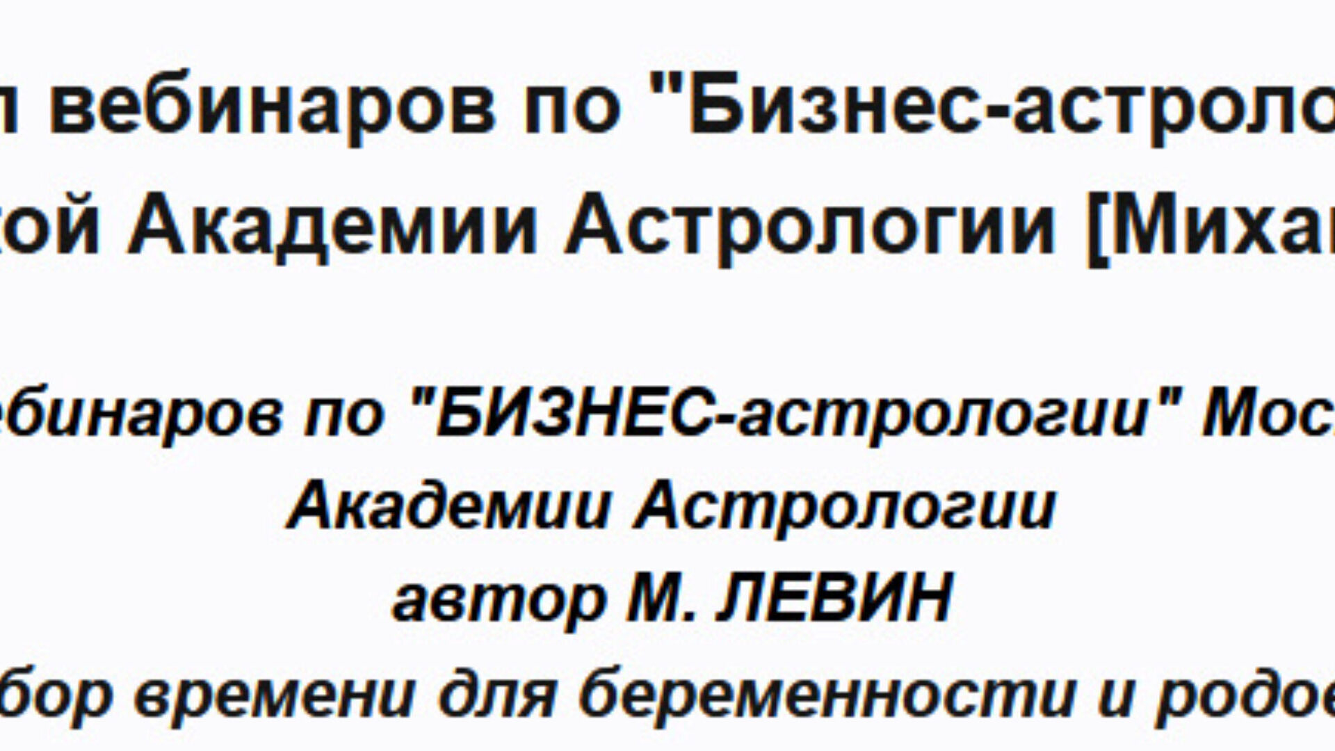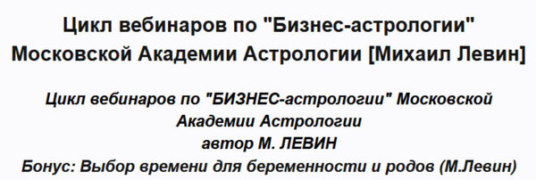 Михаил Левин «Цикл вебинаров по Бизнес-астрологии» — Академия астрологии