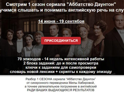 Отзывы о курсе Смотрим 1 сезон сериала «Аббатство Даунтон» и учимся слышать и понимать английскую речь на слух от Милы Хабировой