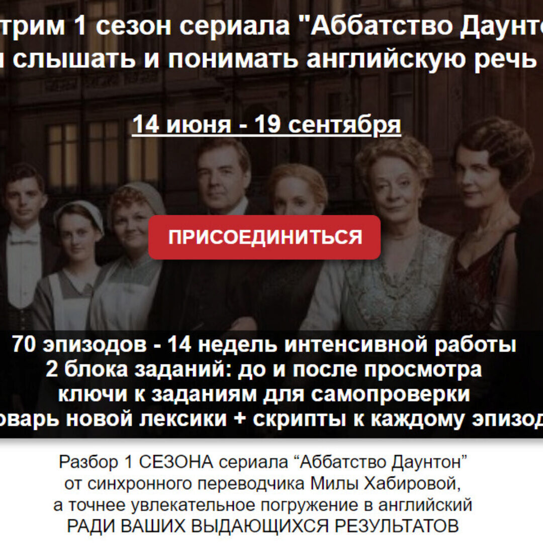 Мила Хабирова Смотрим 1 сезон сериала «Аббатство Даунтон» и учимся слышать и понимать английскую речь на слух