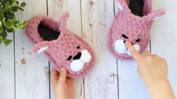 Это формат pdf на 12 листах, видео вязания формы тапочек, а также деталей для оформления мордочек, фото.