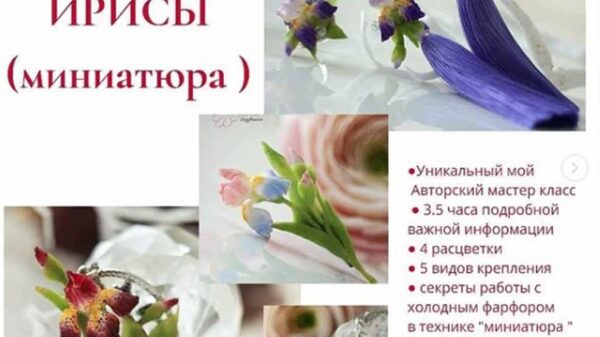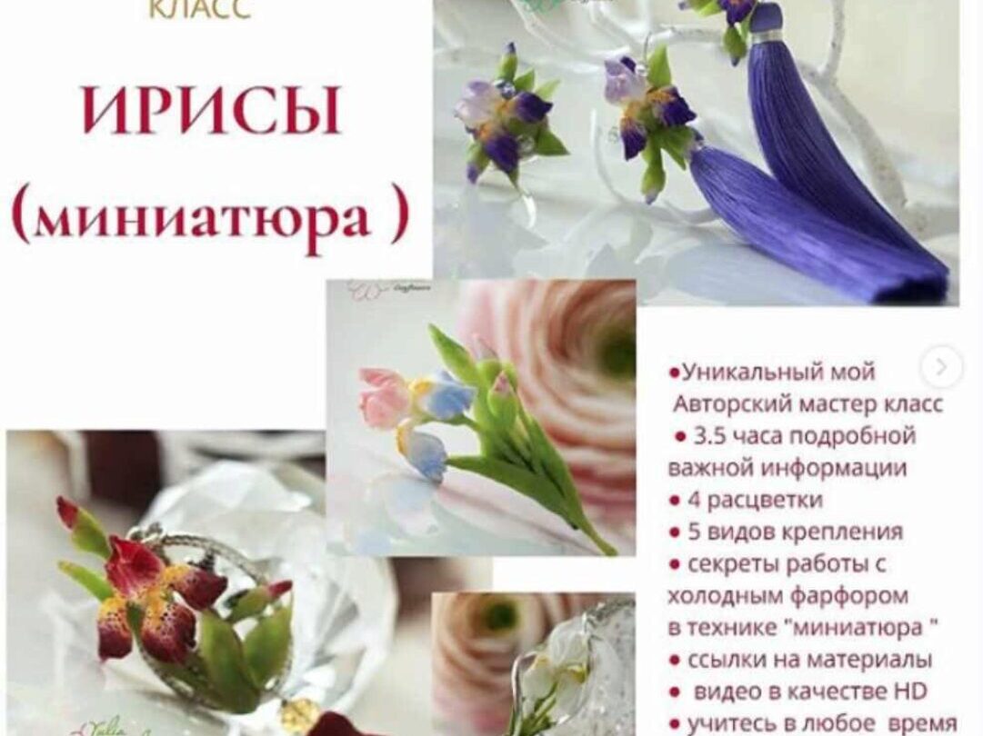 Курс ирисы - это лепка из запекаемой полимерной глины 3 блока, 14 расцветок Запись прямого эфира с разбором ошибок Опыт лепки не требуется! Список материалов небольшой для начала. Вы научитесь: способам формирования лепестка ириса и сборки цветка нескольким способам создания пушистых «бородок» на