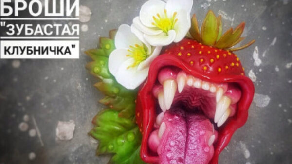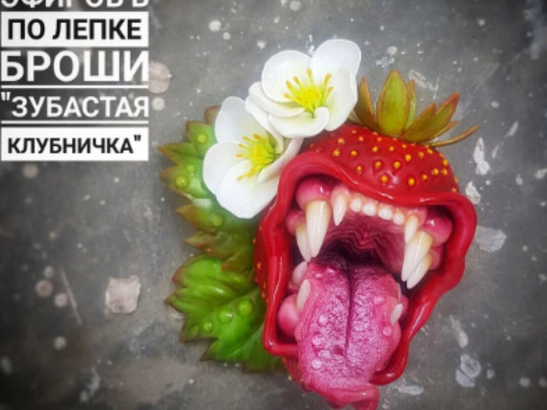 ministerstvo_podarkov Брошь «Зубастая Клубничка» — Лепка
