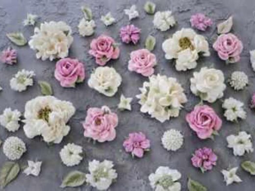 Пыльный розовый и дорогой насыщенный розовый, лавандовый, нежно-сиреневый, спокойный зеленый и оливковый, нежно-голубой - это те цвета и оттенки, приготовление которых показываются в уроке.