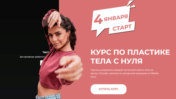 Научись управлять каждой частичкой своего тела за полтора месяца. Онлайн-занятия по авторской методике от Mishka Jane. Для тех, кто никогда не танцевал. Мечтаешь стать пластичной. При помощи простых и понятных упражнений ты увидишь результат уже после первой недели курса. Хочешь чувствовать каждую