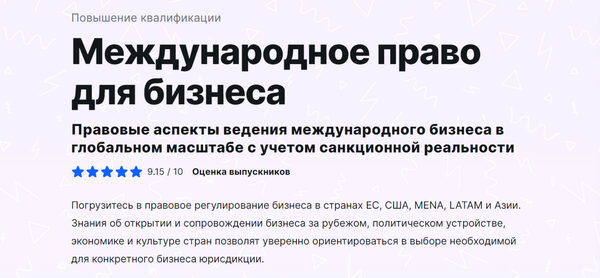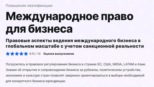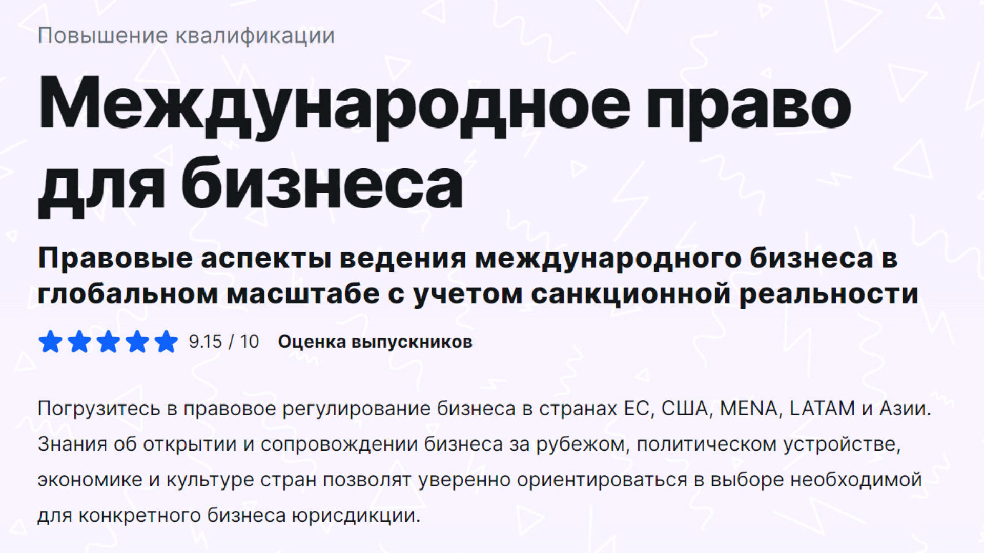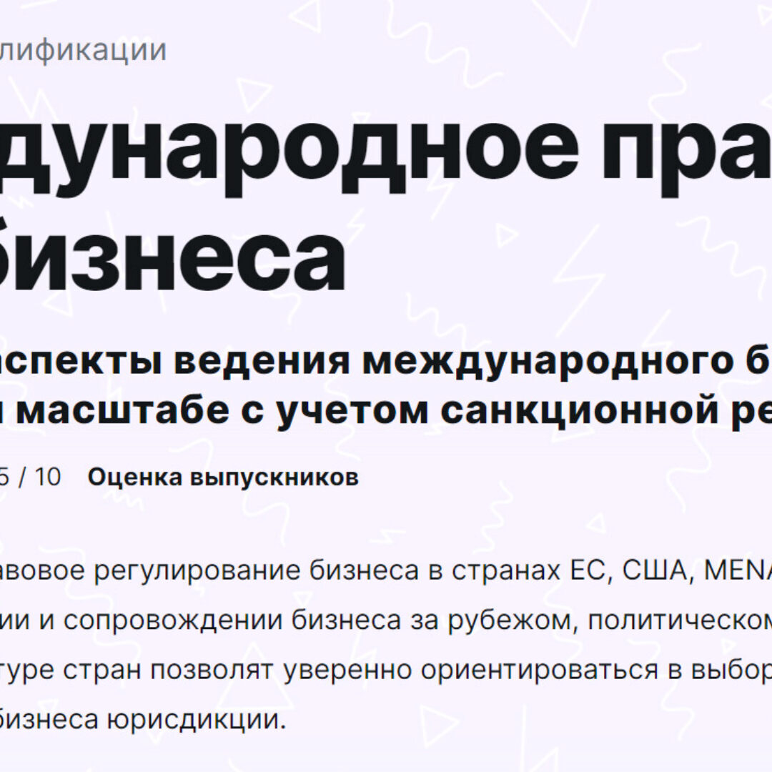 Отзывы о курсе [Moscow Digital School] Международное право для бизнеса. Тариф Базовый от Наталии Капцовой