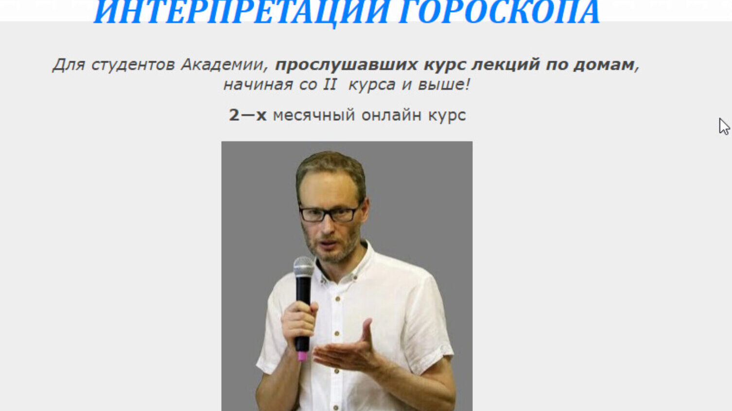 редкий курс Интерпретация домов гороскопа прочитан в 2021 году Ректором Академии Астрологии Михаилом Борисовичем Левиным включает 29 2-х часовых занятий. Вы узнаете глубокое понимание домов гороскопа, их взаимосвязь, от лучшего астролога эзотерика
