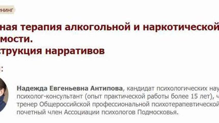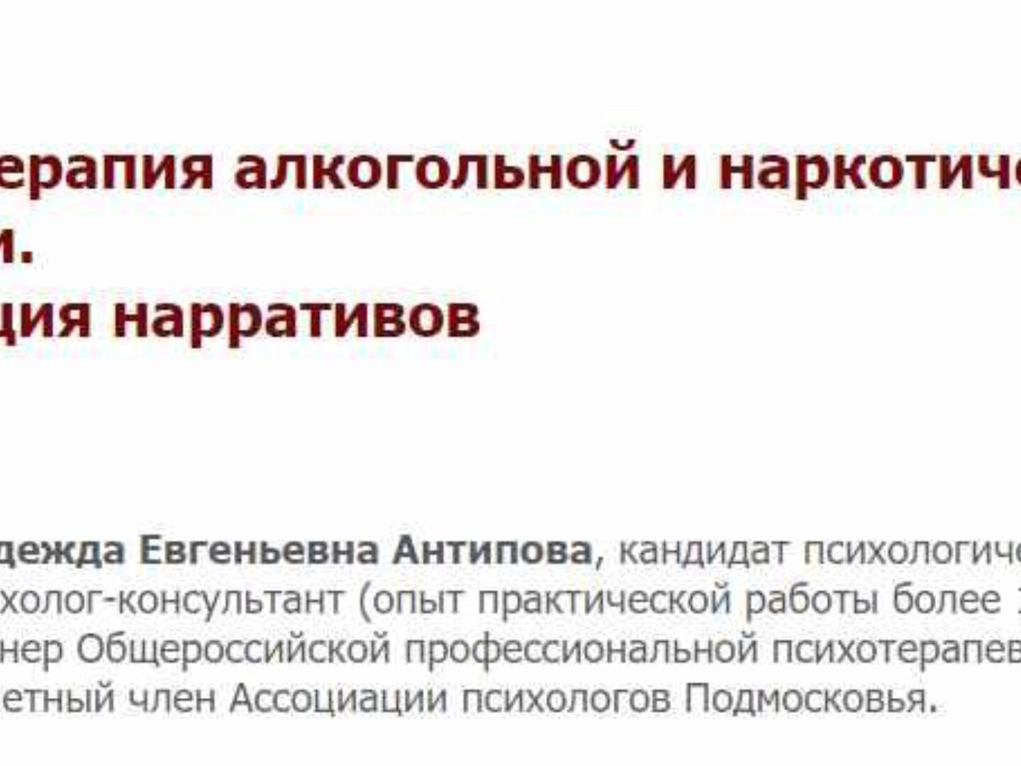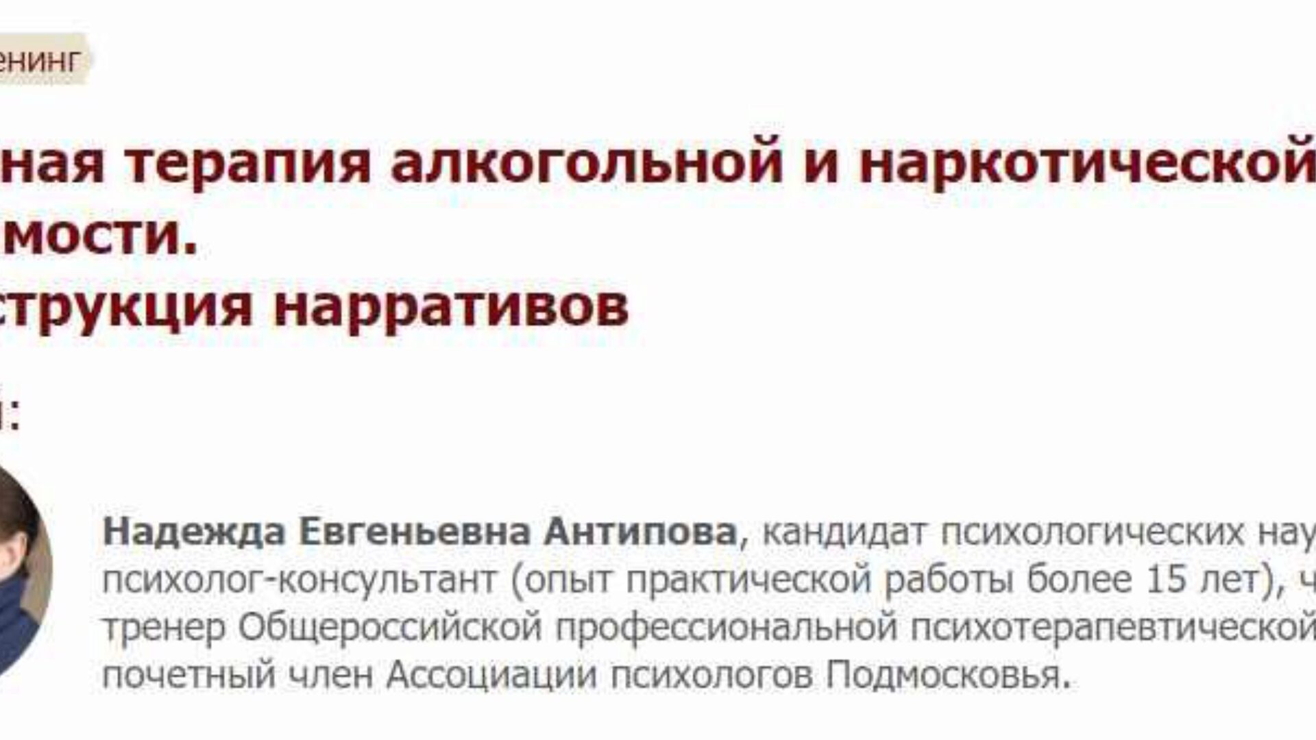 Отзывы о курсе «Ресурсная терапия алкогольной и наркотической зависимости. Реконструкция нарративов» от Надежды Антиповой