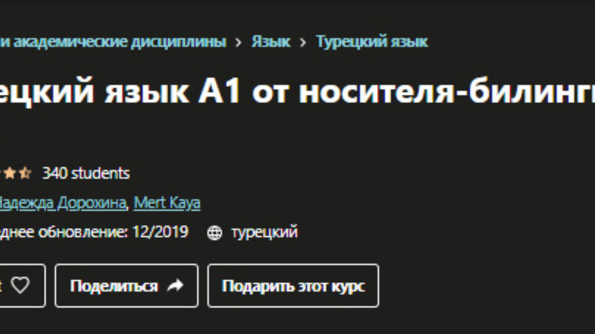 Надежда Дорохина, Mert Kaya «Турецкий язык А1 ч. 1 от носителя-билингва» — Udemy