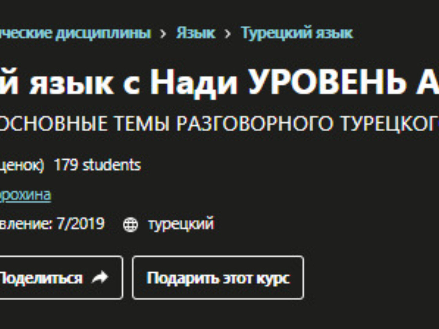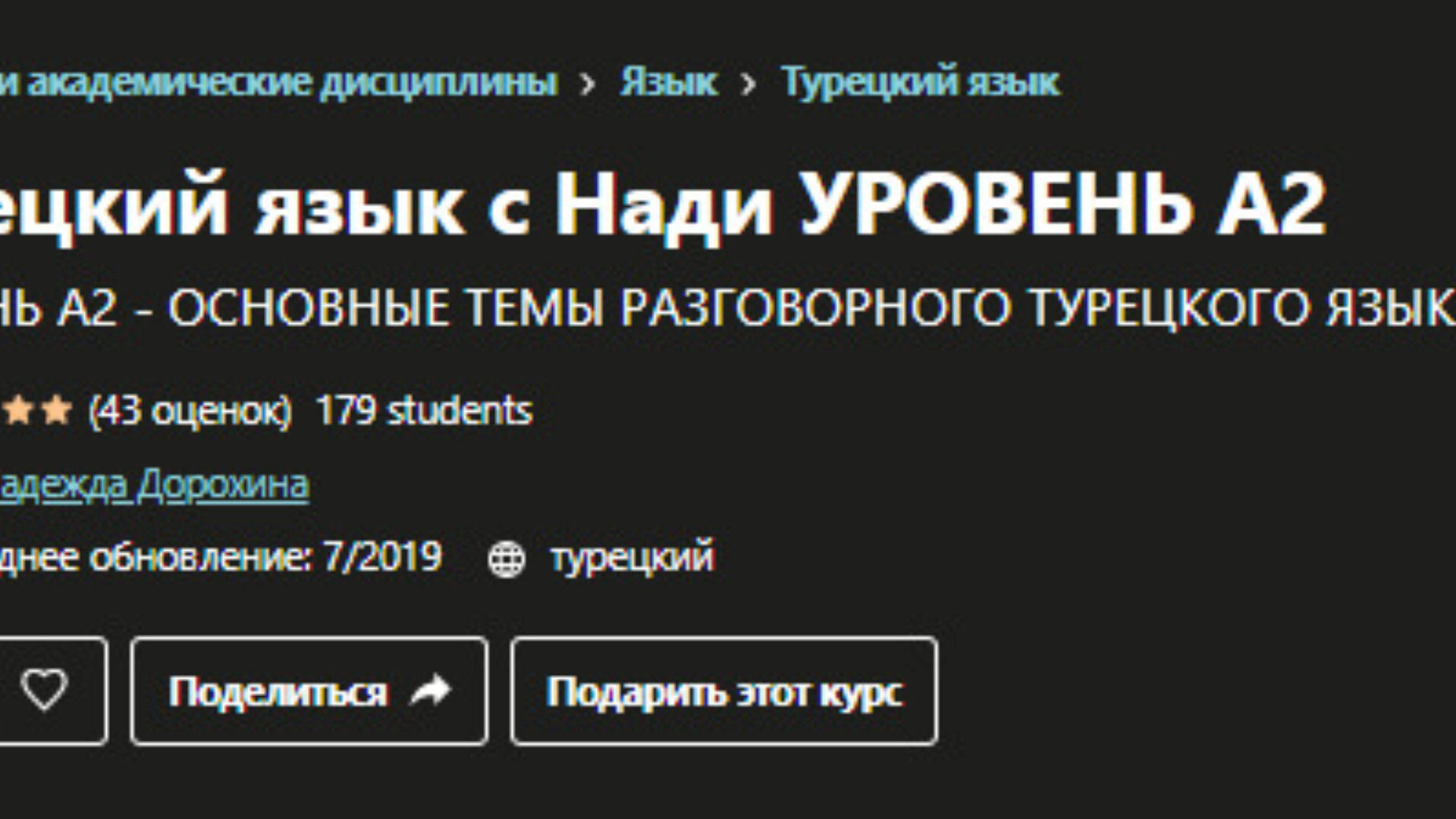 Отзывы о курсе «Udemy]Турецкий язык с Нади. Уровень А2. Основные темы разговорного турецкого языка» от Надежды Дорохиной