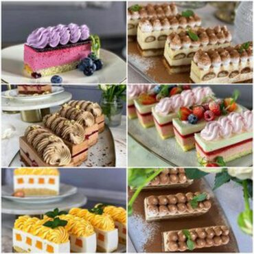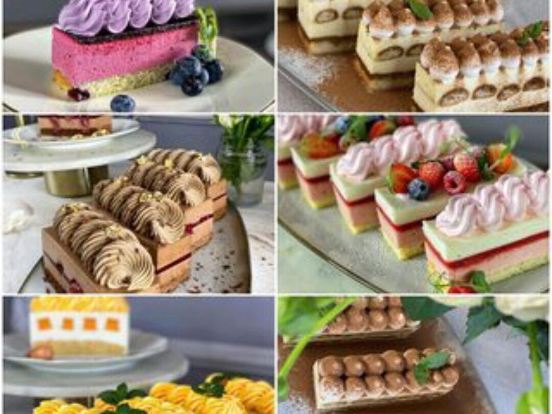 Три курса по нарезным пирожным в одном В составе: Часть 1: Малина-фисташка Фундук-toffee Смородина-белый шоколад Капучино Шоколад-бейлис Вишня в шоколаде Облепиха Часть 2: Клубника - пломбир Чизкейк - карамель Черника - банан Шоколадная ириска Медовик-абрикос Часть 3: Черничный чизкейк Апельсин -