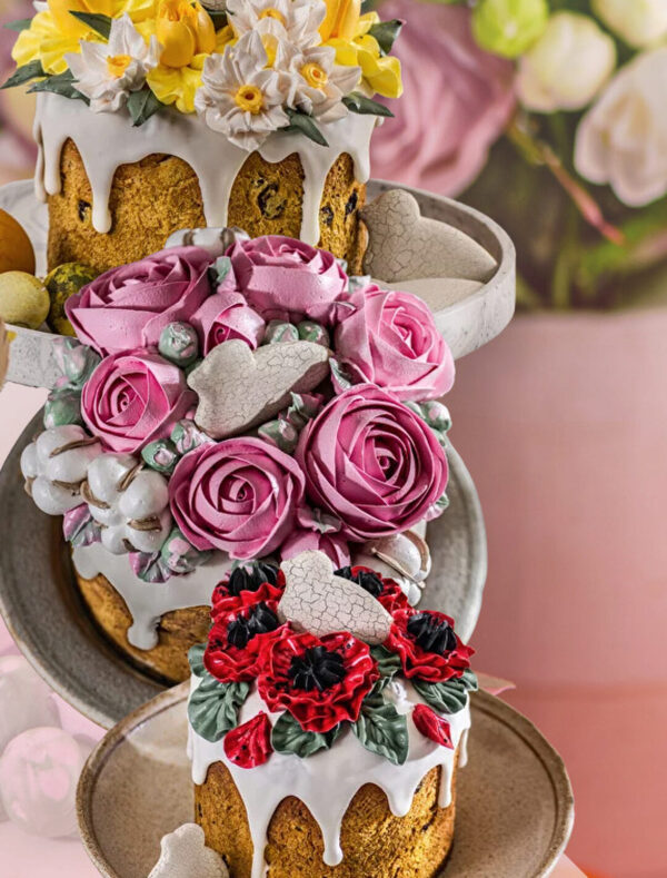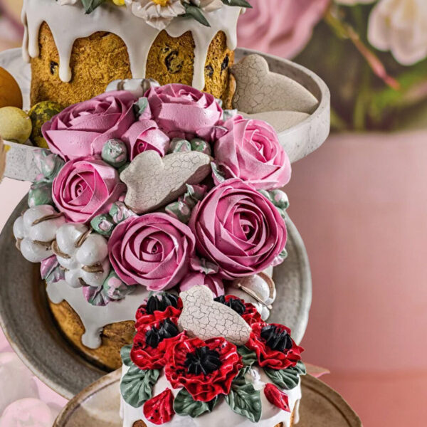 Научитесь готовить вкусный кружевной кулич и декорировать его цветами из крема без масла
