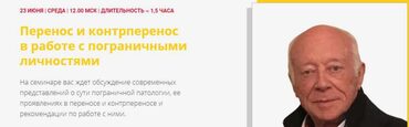 Живое общение, возможность задать вопросы выдающемуся французскому психоаналитику вдохновит, развеет сомнения, даст ясное видение того, что такое контрперенос и как с ним работать Для кого семинар Для учеников и слушателей Школы практического психоанализа Для психологов и психотерапевтов Для