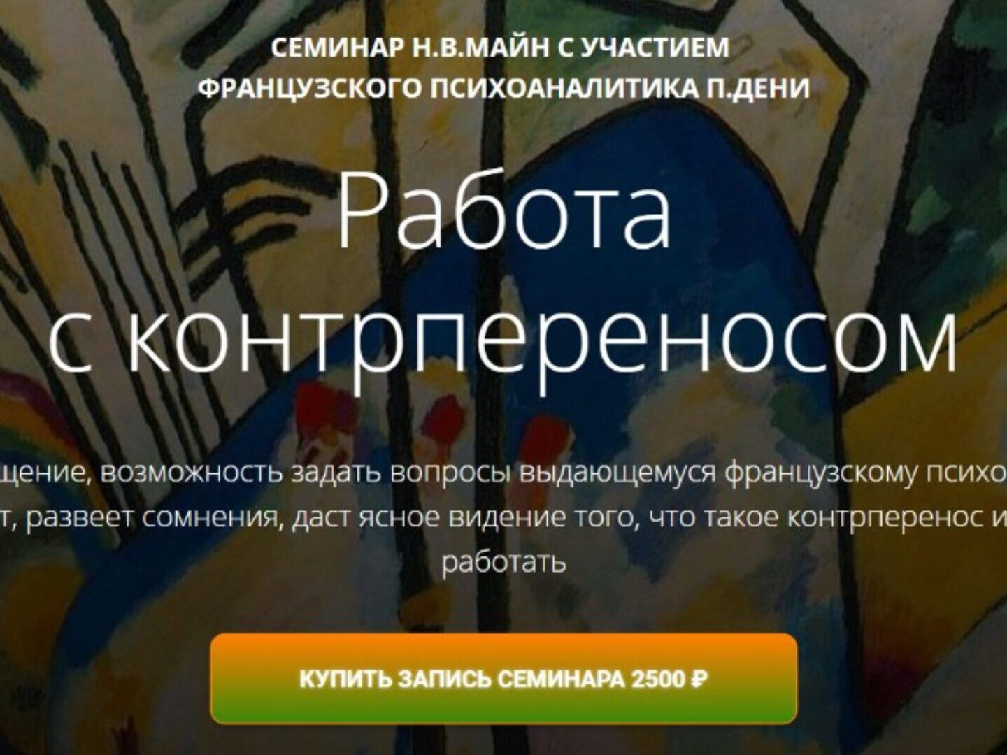 Живое общение, возможность задать вопросы выдающемуся французскому психоаналитику вдохновит, развеет сомнения, даст ясное видение того, что такое контрперенос и как с ним работать Для кого семинар Для учеников и слушателей Школы практического психоанализа Для психологов и психотерапевтов Для