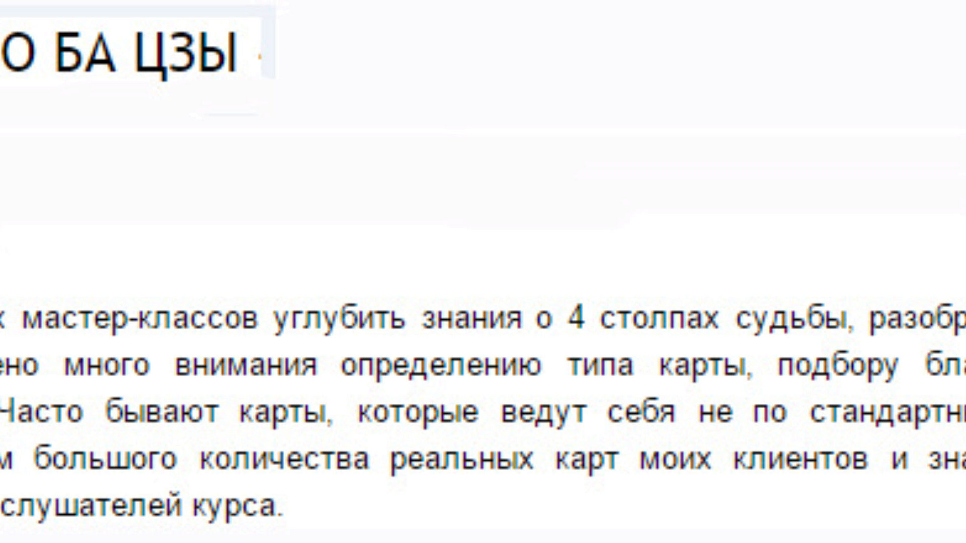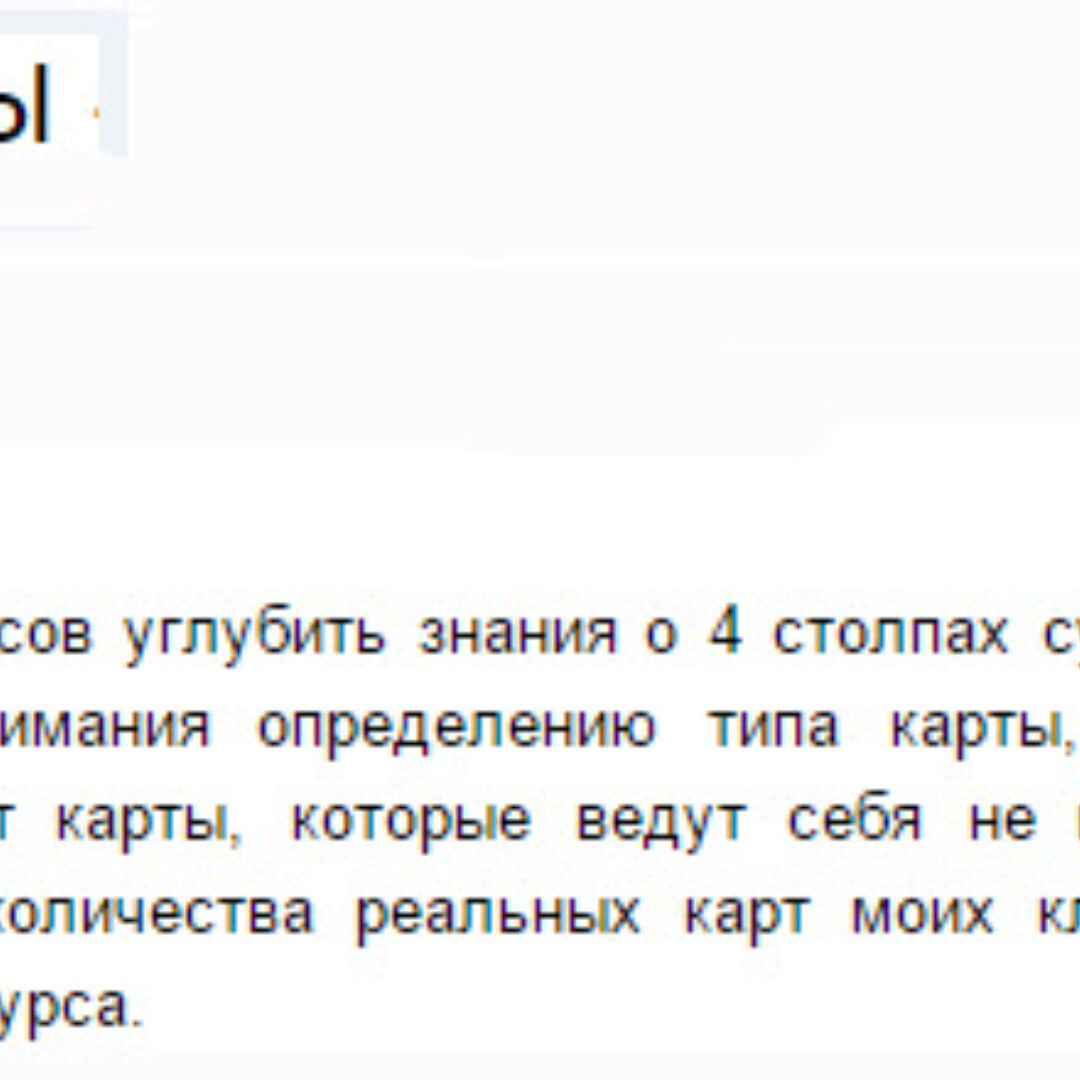 Цель данных мастер-классов углубить знания о 4 столпах судьбы, разобрать узкие темы, сложные карты, будет уделено много внимания определению типа карты, подбору благоприятных и неблагоприятных элементов. Часто бывают карты, которые ведут себя не по стандартным правилам. Это будут очень практические