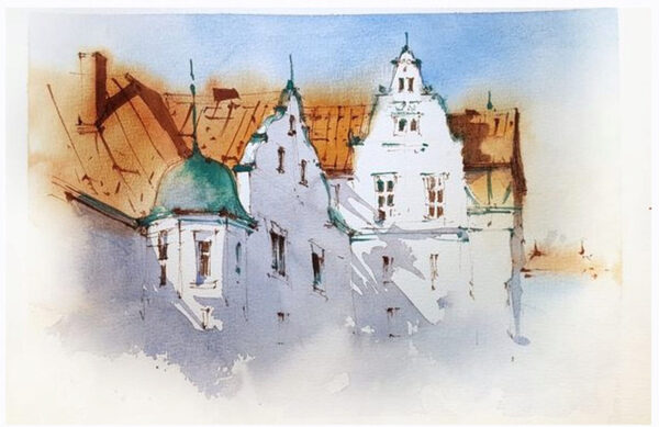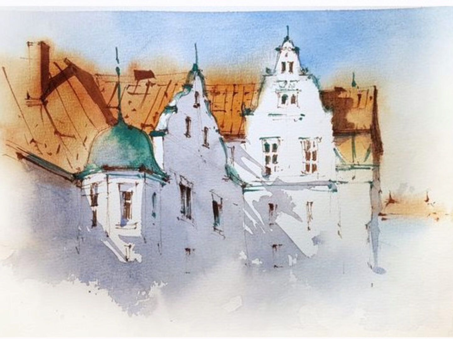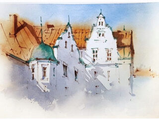 После нескольких дней занятий мы сможем писать акварелью разнообразные сюжеты. На практике освоим акварельные понятия и приёмы: заливки, тон, цвет. Научимся передавать свет и фактуру материала, писать архитектурные элементы, работать с ограниченной цветовой палитрой. Подробно о курсе: Вас ждёт пять
