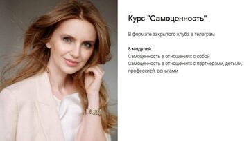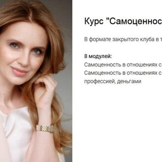 4 модуля: Самоценность в отношениях с партнерами, детьми, с профессией, деньгами