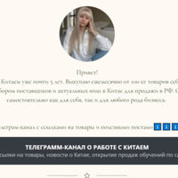 Содержание: -Полное обучение по работе с сайтом Таобао (от регистрации до самостоятельного выкупа) -Полное обучение по работе с оптовым сайтом 1688.com. Весь функционал все способы выкупа, в том числе и самостоятельный, без карт, учитывая ограничения для РФ, анализ поставщиков и товаров -Уроки по