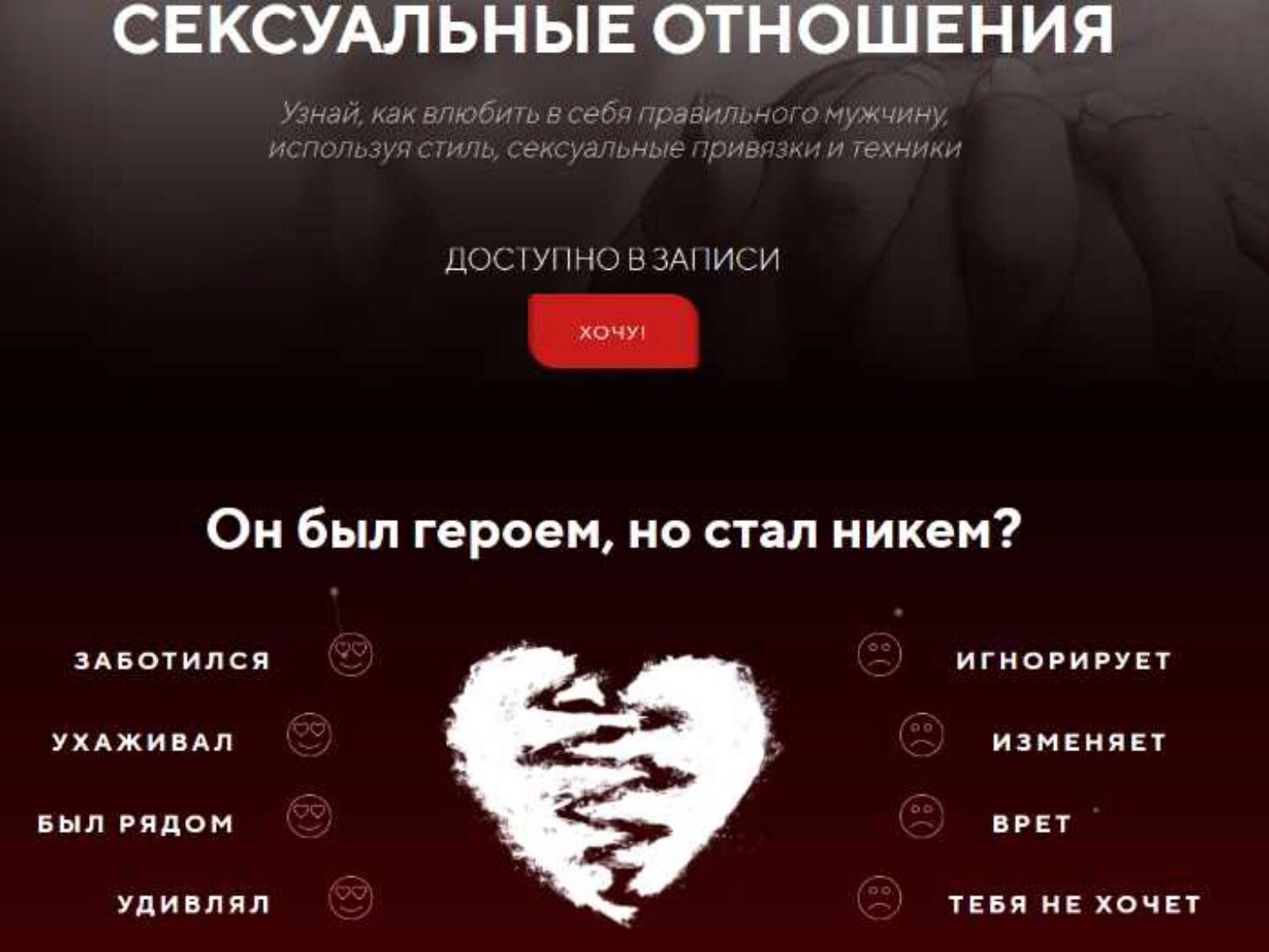 Что с тобой произойдет после интенсива: Будешь влюблять в себя мужчин без усилий (даже пикаперов и «бывалых»). Просто потому, что ты - такая. Найдешь особенного, классного, надежного Мужчины захотят тратить на тебя время, деньги, уделять тебе внимание, исполнять твои капризы. Избавишься от ревности