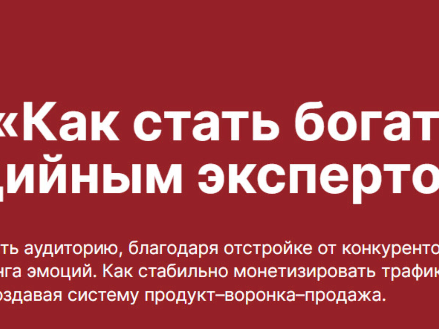 Как набирать аудиторию, благодаря отстройке от конкурентов и маркетинга эмоций. Как стабильно монетизировать трафик, создавая систему продукт–воронка–продажа. + привлекать аудиторию в блог не по конской цене + прогревать, а не выжигать аудиторию + получать оплаты даже без прямых продаж После курса