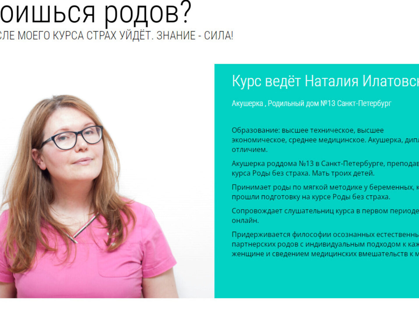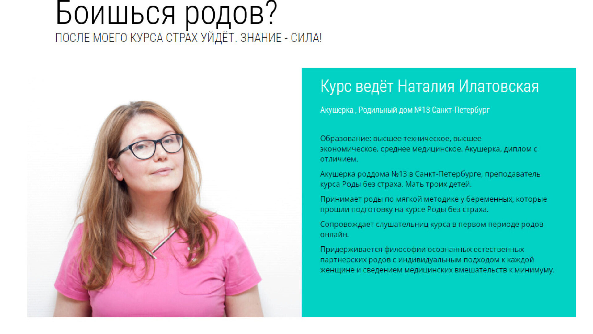 Курс ведет акушерка Наталия Илатовская (Черкас)