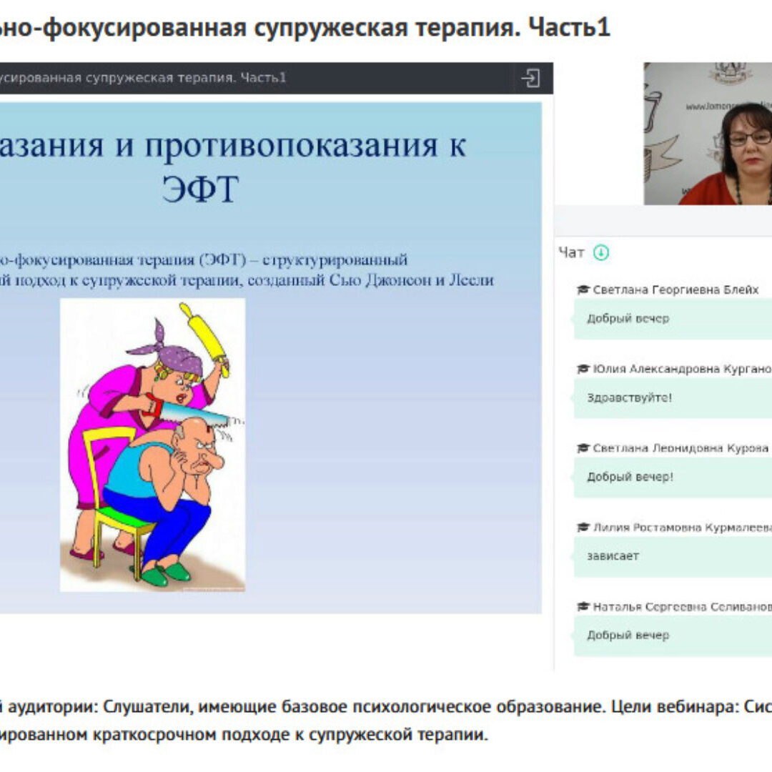 Отзывы о курсе Вебинары «Эмоционально-фокусированная супружеская терапия» от Наталии Русаковой