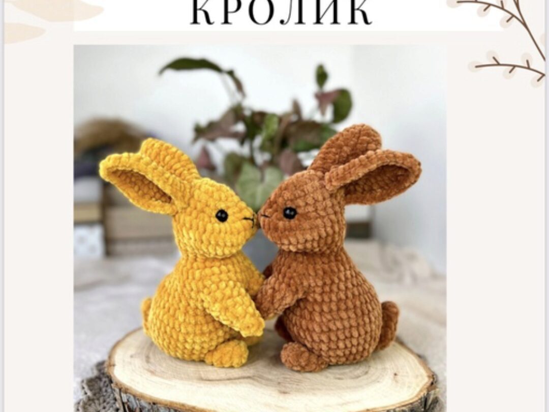 Пришиваются только ушки, хвостик и задние лапки. Экономичный расход пряжи, из одного моточка получается 2 игрушки! Рост кролика без ушек - 16 см.