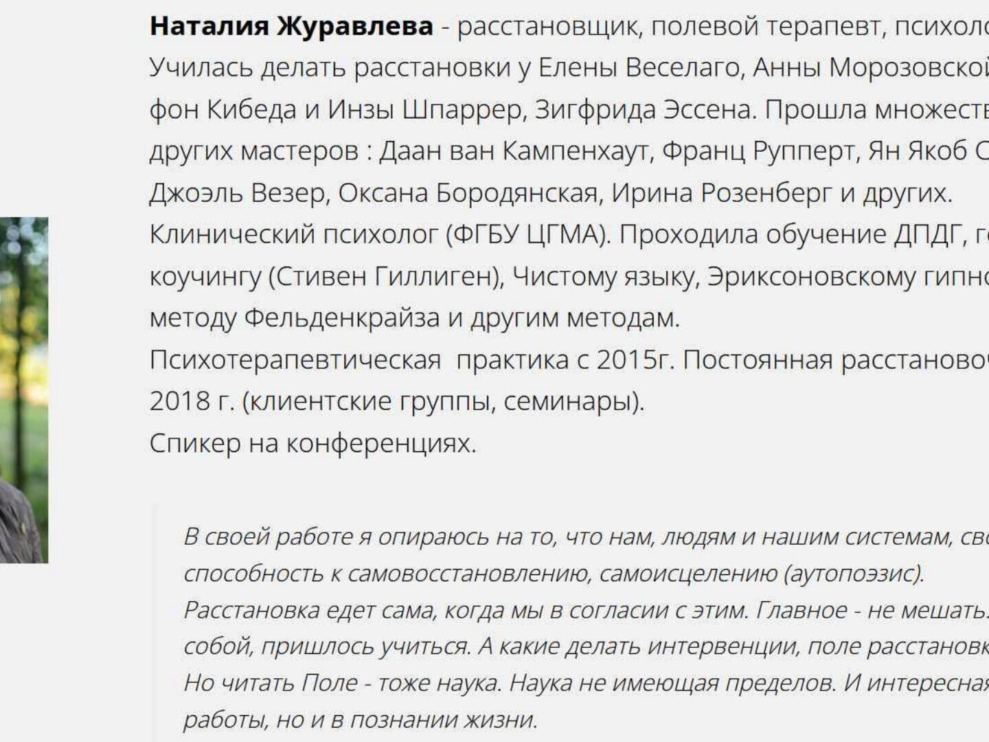 Пожалуйста, обратите внимание, что это не терапевтическая и не клиентская, а учебная группа практики. Работают студенты. Расстановщики выбирают клиентов из числа участников. Участие в группе и расстановки идут в зачётку.