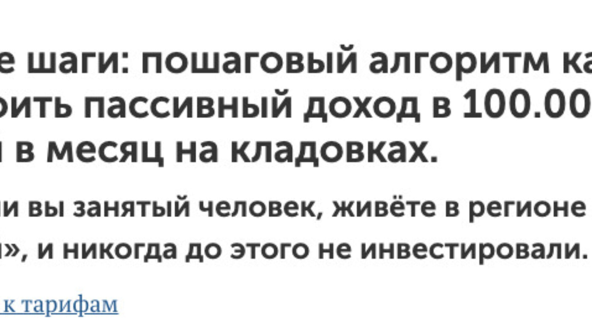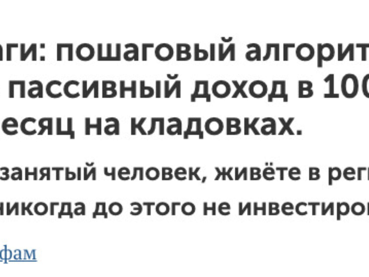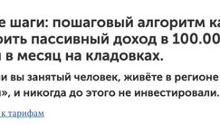 Первые шаги: пошаговый алгоритм как с 0 выстроить пассивный доход в 100.000 рублей в месяц на кладовках.