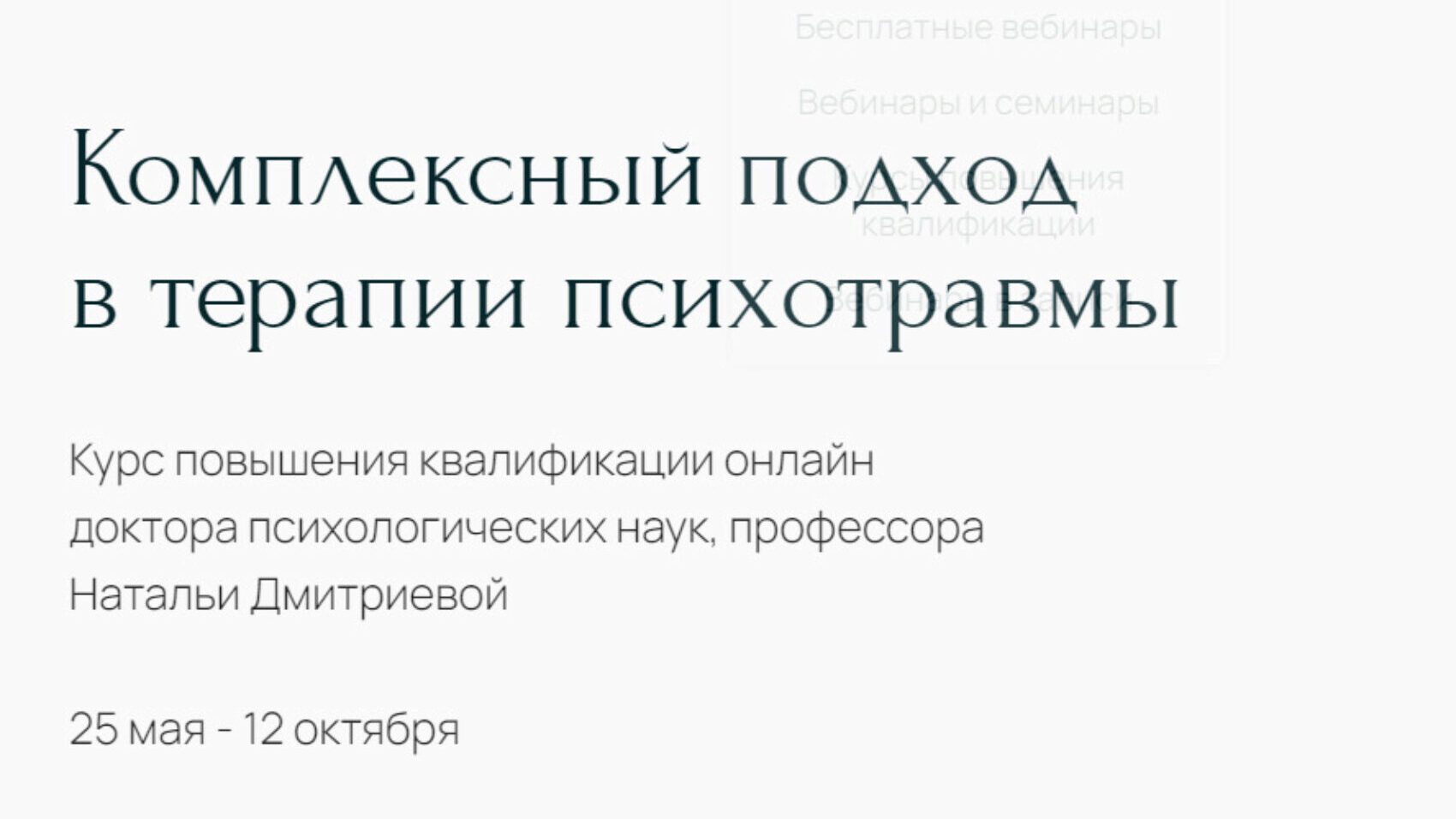 Отзывы о курсе «Комплексный подход в терапии психотравмы» от Натальи Дмитриевой