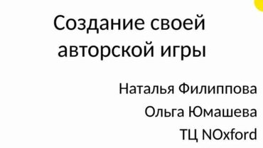 Наталья Филиппова, Ольга Юмашева «Создание свое авторской игры. Тариф Интенсив»