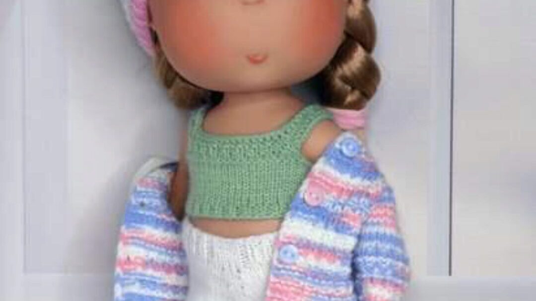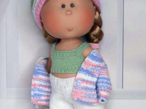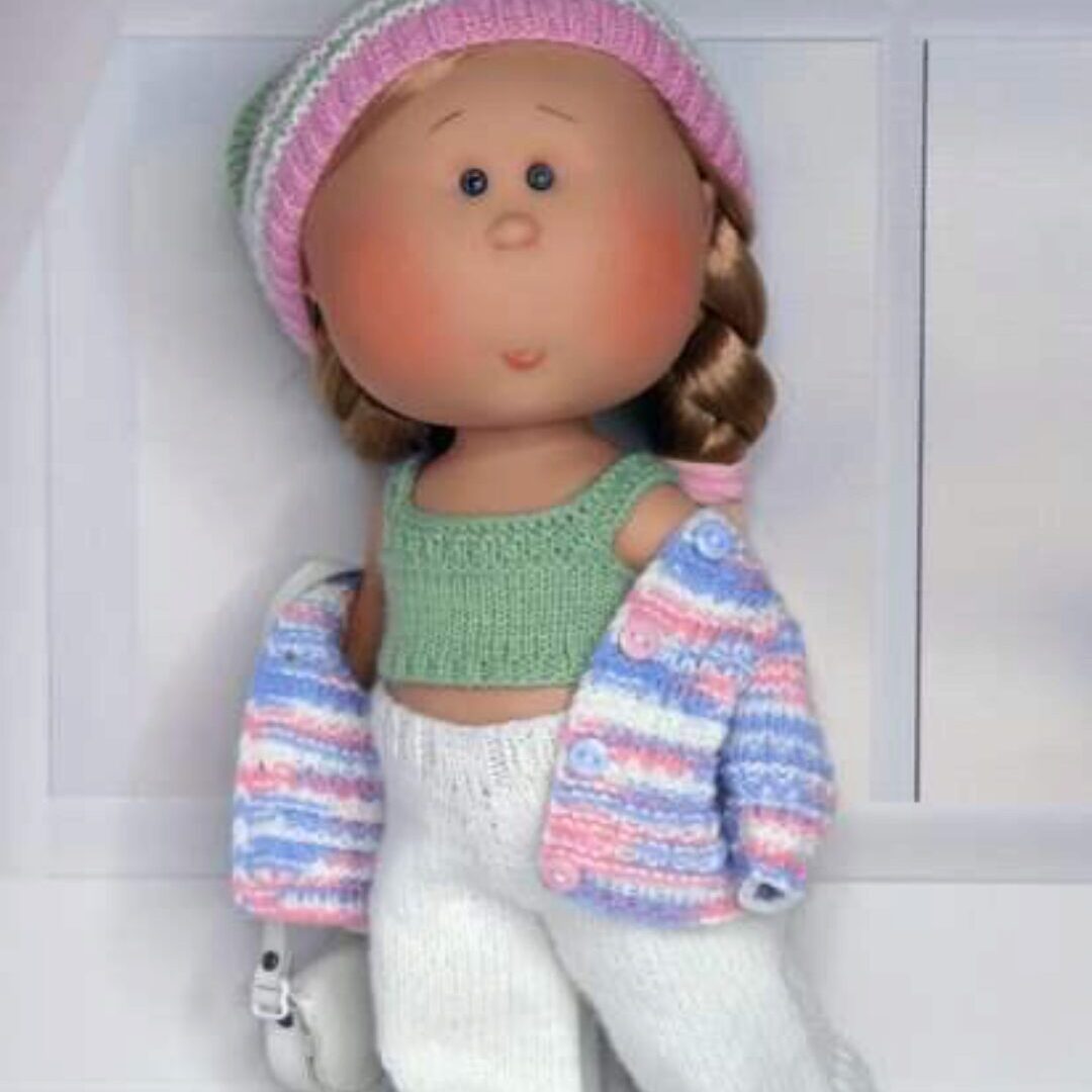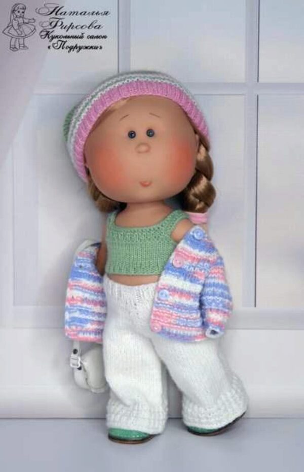 МК по вязанию спицами стильного, молодежного комплекта одежды для кукол MIA от Nines D»onil 30 см.