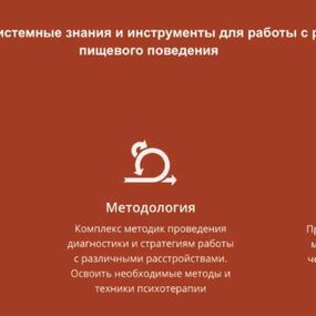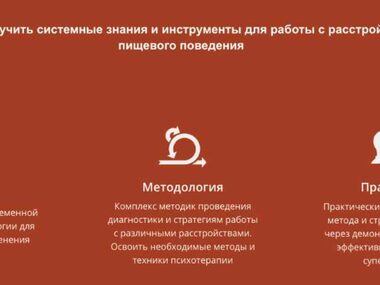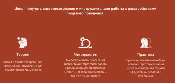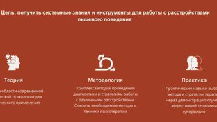 Программа курса отражает личный опыт и экспертное мнение о новейших исследованиях по работе с пищевыми расстройствами через коррекцию нарушений образа тела. Включает в себя теорию, практику, совместное исследование факторов формирования различных расстройств и возможности их терапии. Курс состоит