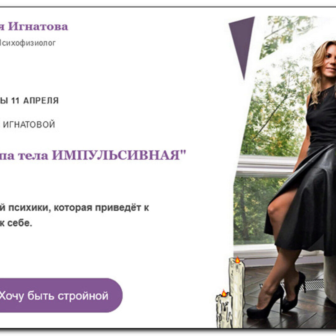 Как гайд «Психофизиология лишнего веса» вам поможет решить проблему с перееданием и лишним весом? Посмотрите видео-приглашение от Натальи Игнатовой В нем описано: Почему каждый человек полнеет по разному. Из-за каких психологических причин у одних появляются лишние объёмы на талии, а у других на