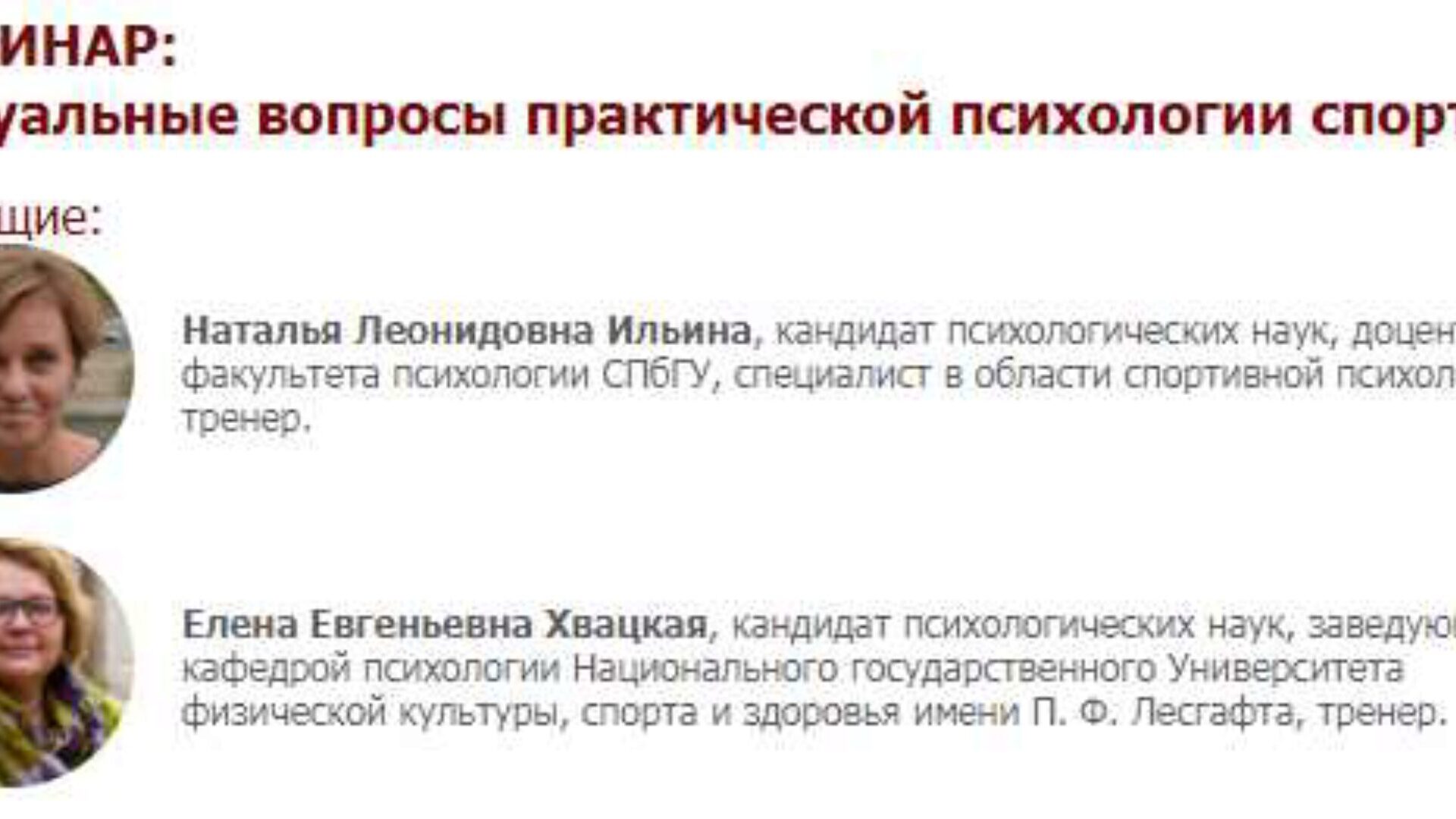Наталья Ильина, Елена Хвацкая «Спортивная психология. Цикл вебинаров»