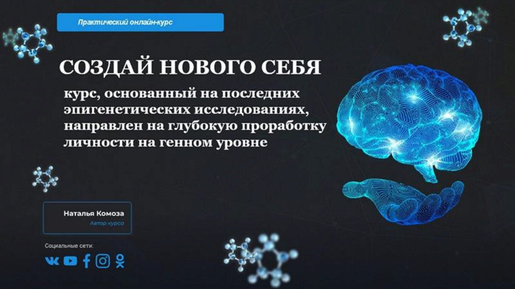 Для тех, кто хочет разобраться — почему он именно такой, какой есть, какие причины легли в основу формирования его личности, а главное, изменить в себе то, что не нравится, я приглашаю на курс «Создай нового себя». В его основе — последние эпигенетические исследования о том, что наше окружение, эмоциональные и физические травмы включают гены, которые определяют, кем мы станем.