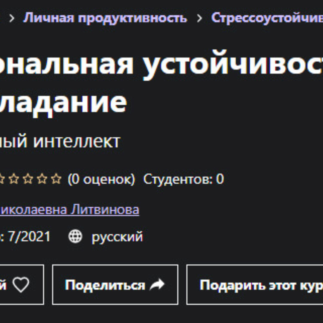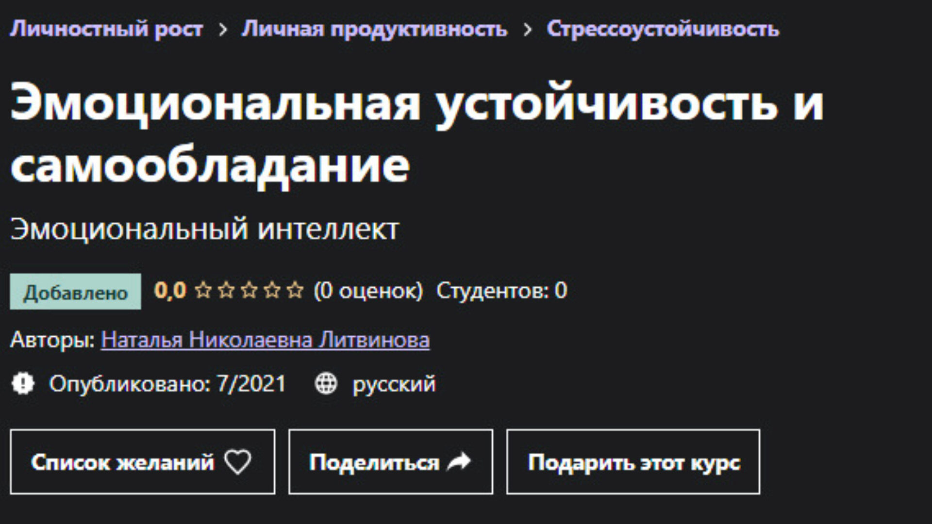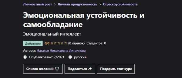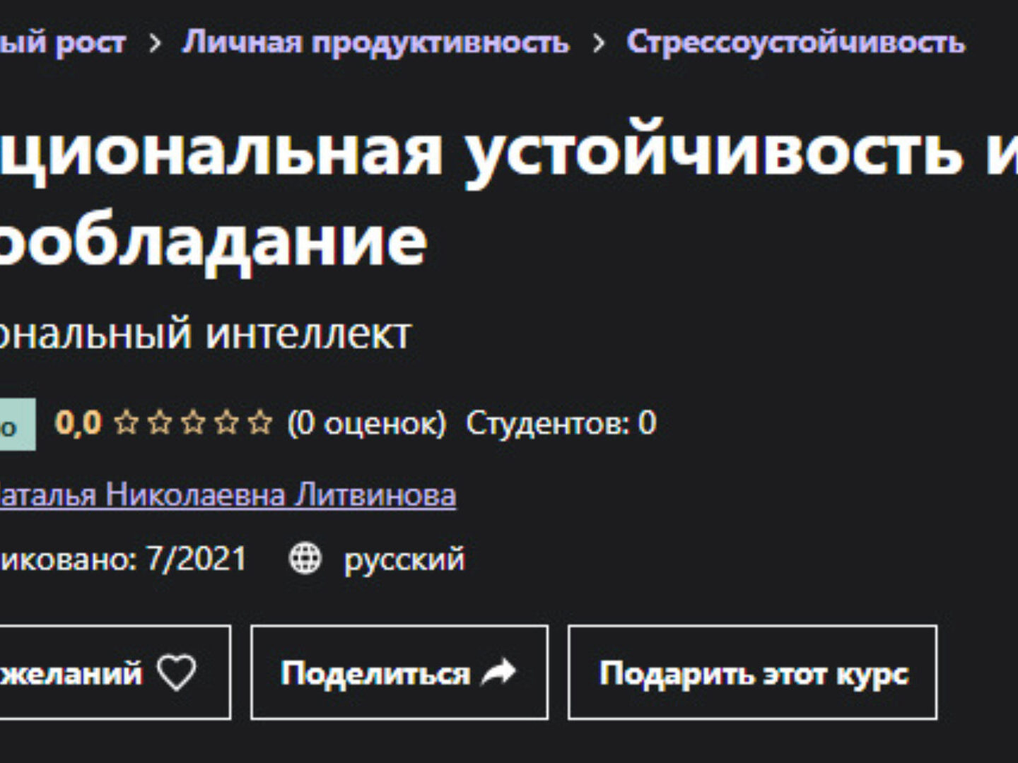Наталья Литвинова «Эмоциональная устойчивость и самообладание» — Udemy