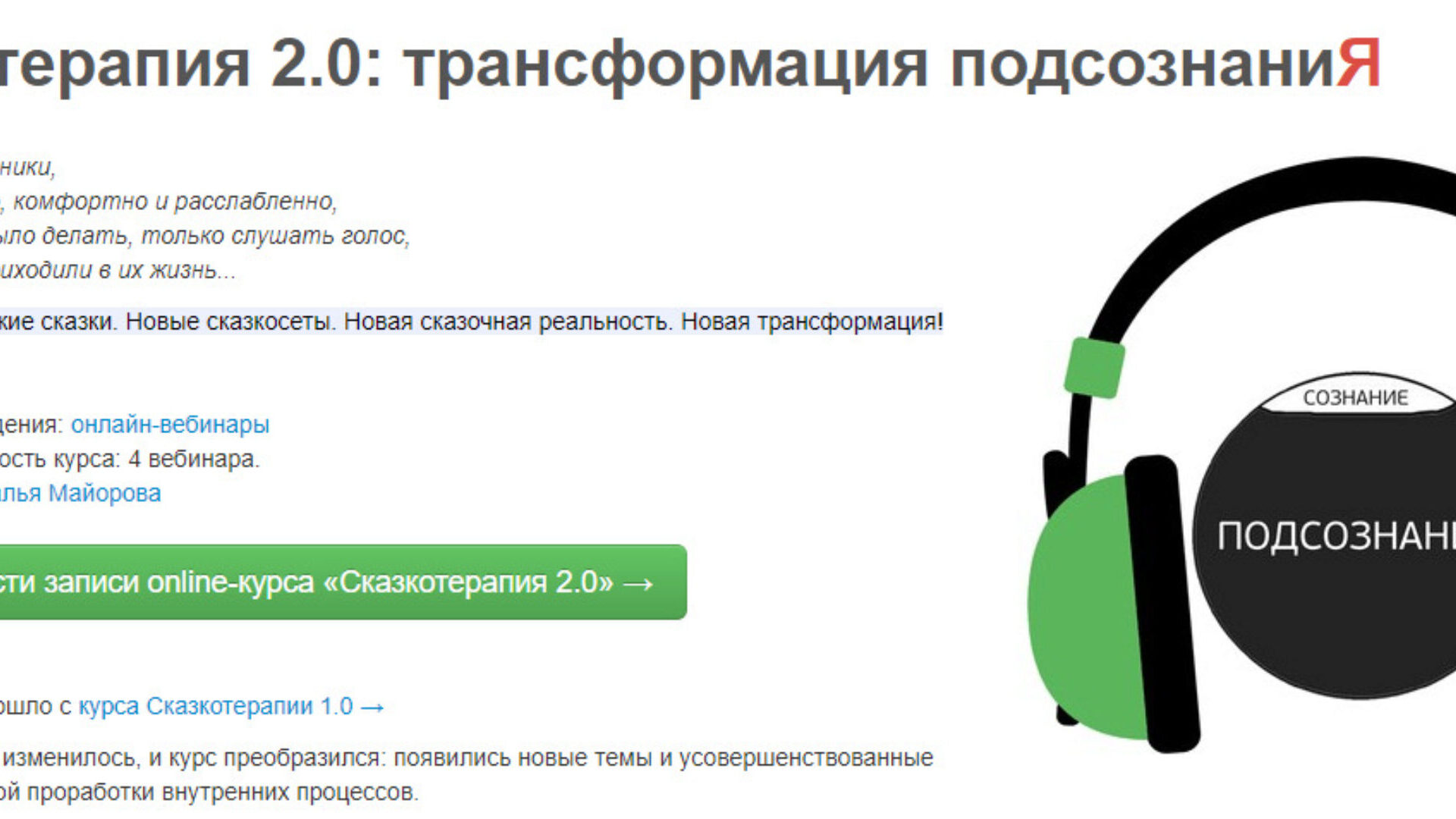 Наталья Майорова «Сказкотерапия 2.0: трансформация подсознаниЯ»