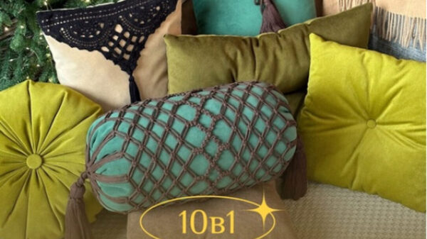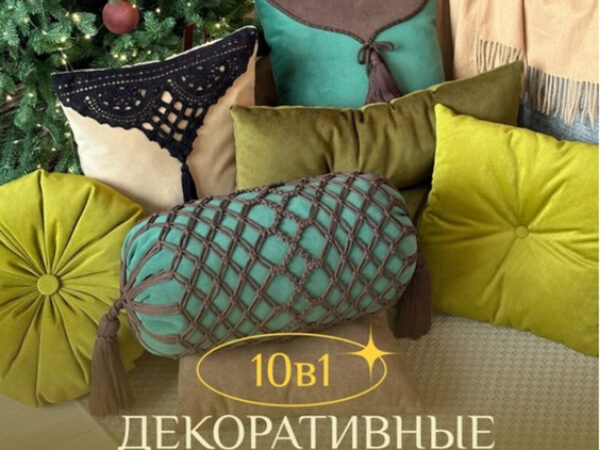 Я покажу пошив 10 подушек с разными формами и декоративными элементами:
