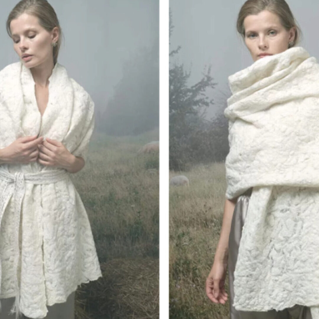 - На примере создания «Ледяной палантин» раскрою принцип технологии «замороженный» войлок