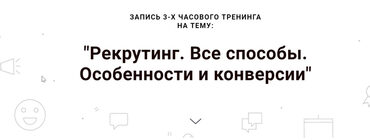 Простая пошаговая система закрытия вакансий превратит вас в успешного рекрутера, даже если вы начинаете с нуля. Чему вы научитесь Вы получите правильную психологическую настройку для успешного рекрутинга, избавитеcь от страхов в прошлом, настоящем и будущем. Вы научитесь получать информацию о