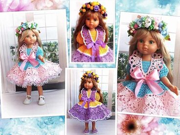 pdf МК. Следуя моей инструкции вы свяжете крючком ажурные платья с кружевными подъюбниками для кукол Мия Mia Nines D'Onil. В файле подробное описание вязания, подробные графические схемы и фотографии процесса вязания. Уровень сложности средний. У вас должен быть опыт вязания крючком для кукол.