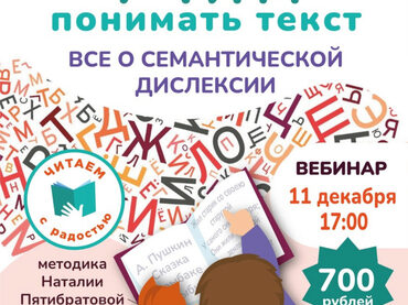 И не только для школьников с «условной нормой» развития. Вебинар подготовлен мной для тех, кто сталкивается с обучением понимания прочитанного и вообще работе с текстом. Особый упор сделаю на коррекцию семантической дислексии, при которой текст читается почти механически. Да, красиво, без ошибок, бегло, но - ничего не понимая. Или понимая поверхностно, буквально.