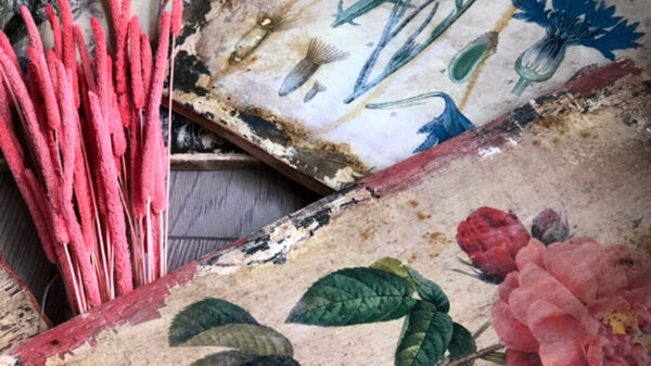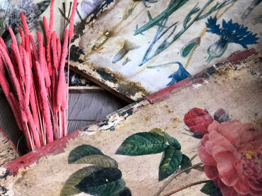 - Вживление на имитацию старой доски индонезийской лодки. Техника создания натуральных продиров на поверхности и ее состаривание.