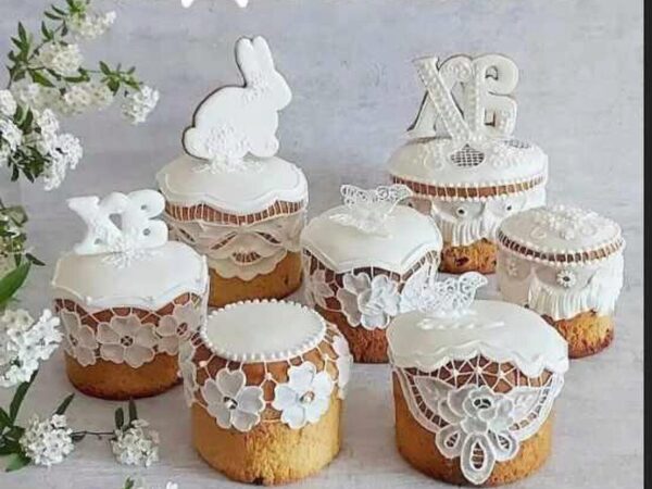 8. С 8 по 12 уроки - 5 различных дизайнов куличей в кружевной технике.