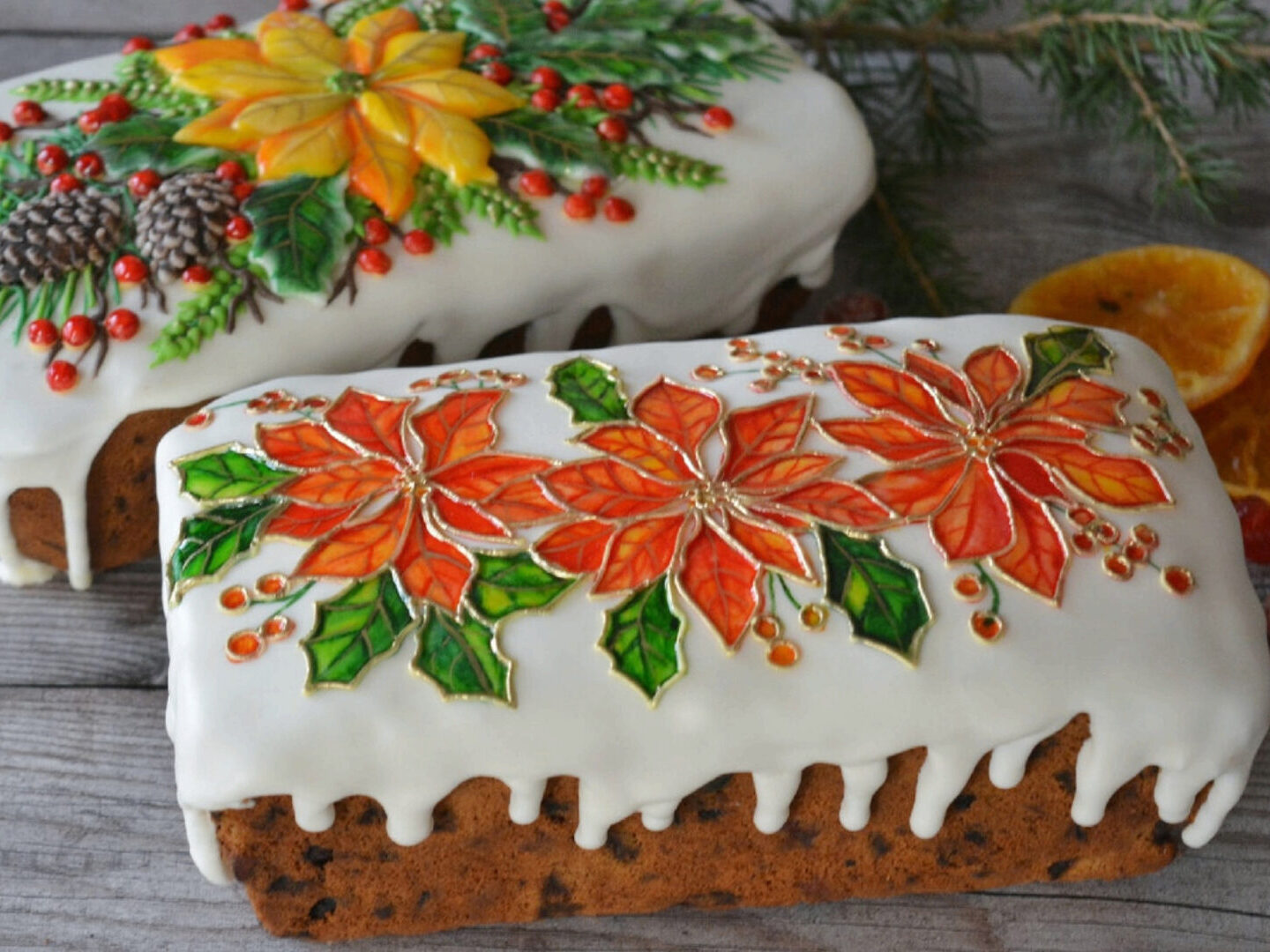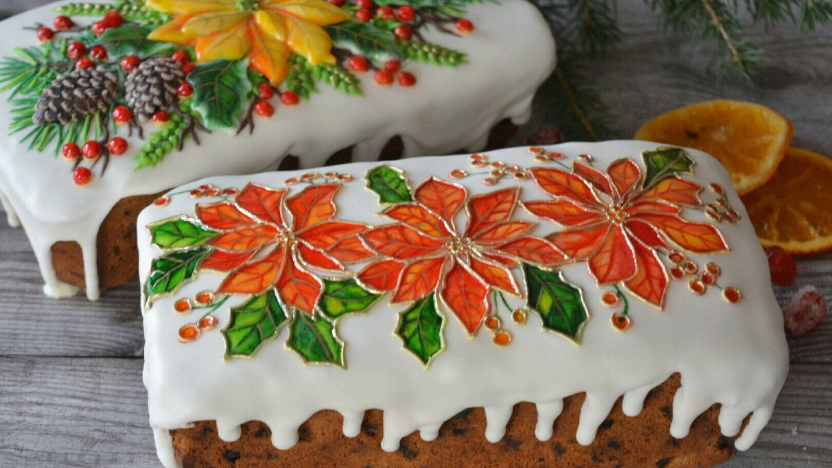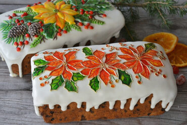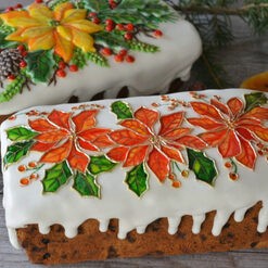 3. Декор кексов с пуансетиями в витражной технике.