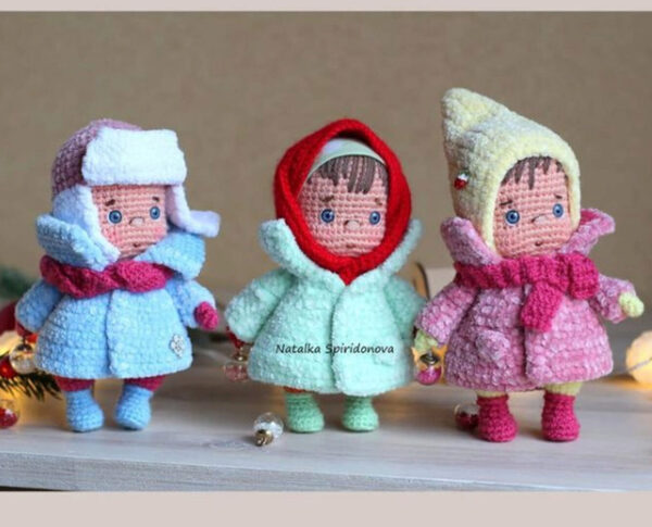 Мастер-класс Малыши Снеговички Пряжа YarnArt Christmas, снеговики связаны крючком, одежда спицами. Подробное описание с фотографиями процесса. Голова поворотная, на пуговичном крепление. Ручки и ножки сгибаются. Подробное описание, как сделать носик из полимерной глины. 24 страницы в формате pdf