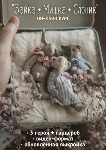 В данной складчине предоставляются очень подробный видео мк создания зайки грустишки, плюс выкройки слоника, сиамского котика, зайки грустишки и мишки пузишки. Сможете создать любой мимишный образ вашим теддикам. Видео-курс содержит авторский подробный материал, с помощью которого даже новичок